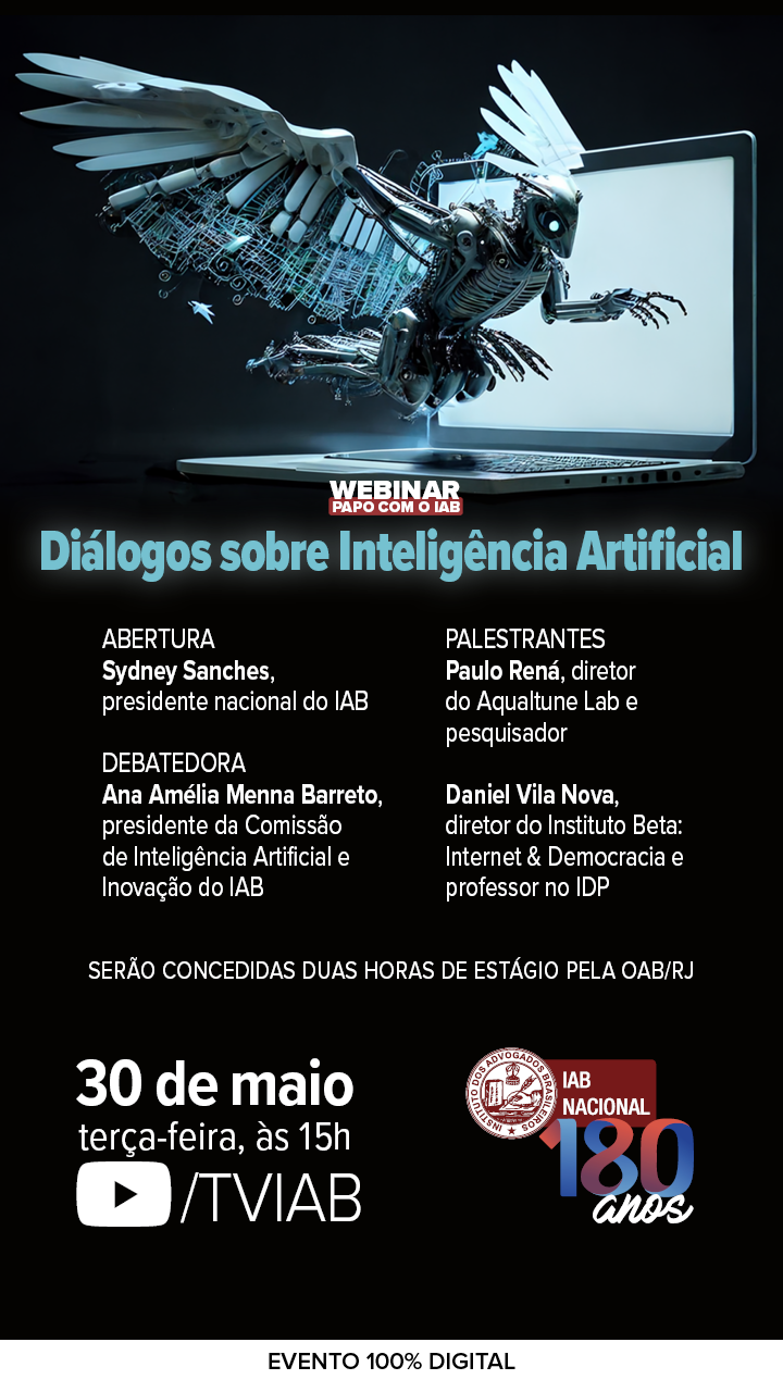 Evento da nossa Comissão de Inteligência Artificial e Inovação do IAB Nacional. 30 de maio de 2023 Acesse a transmissão https://www.youtube.com/watch?v=MCfcSo0y4eQ&t=40s marco-legal-da-inteligencia-artificial-tem-problemas-conceituais-diz-advogado