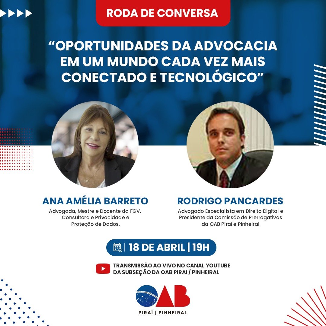 Roda de conversa com a OAB Piraí – RJ Acesse a tranasmissão no meu canal You Tube https://www.youtube.com/watch?v=YrScgnQCCB0&t=161s